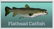 World record: 123 pounds, 9 ouncesFlatheads are caught primarily on bait like live shiners and chubs and only occasionally on cut or prepared baits. They are the second largest of the catfishes and lie in cover of submerged logs or other large structures. Prime fishing time for catching flathead catfish is after dark. Blue CatfishIctalurus furcatus